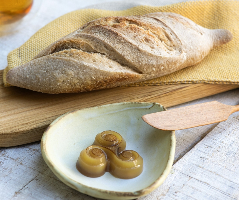 Nossa mini-baguette é um charme só. Acompanhada de potinho de manteiga.