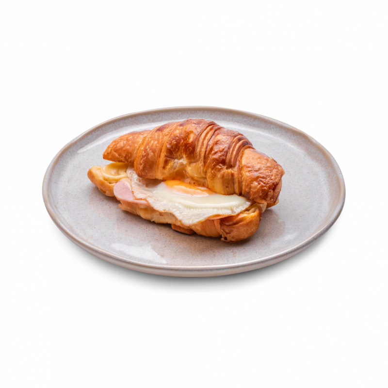 Croissant com queijo mussarela, presunto e ovo frito
