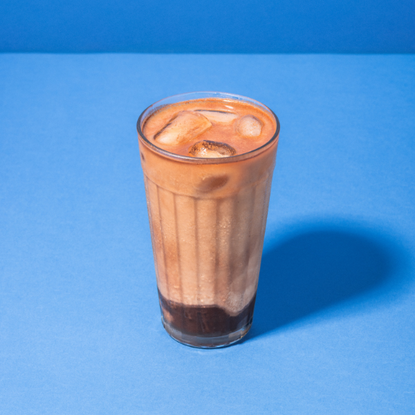 Cold brew, calda de chocolate, leite sem lactose, gelo e chocolate em pó.Contém lactose.