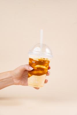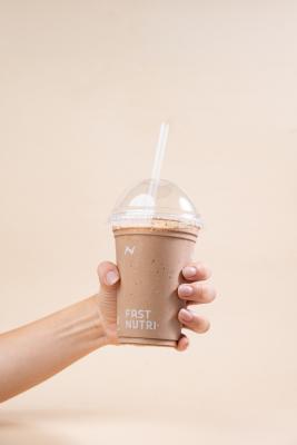 Uma deliciosa mistura de capuccino da casa, leite de coco e proteína de baunilha.