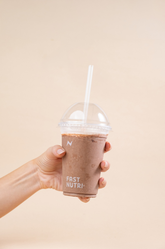 Base sorvete proteico batido com leite de coco , cacau em pó e adoçante natural (eritritol, stevia e taumatina).