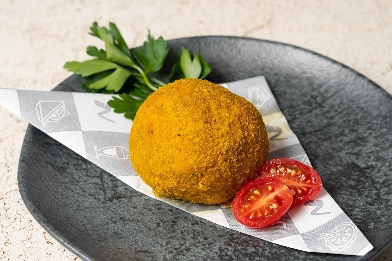 Massa feita com Abóbora e Frango e empanado na Farinha de Linhaça e Gergelim Branco.