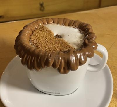 Café Expresso, leite cremoso, borda de Nutella, finalizado com canela. 240ml