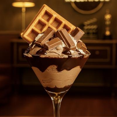 Cremosidade perfeita da mistura do leite com sorvete e Ovomaltine, misturado com delicioso chantilly, calda de chocolate e Ovomaltine.