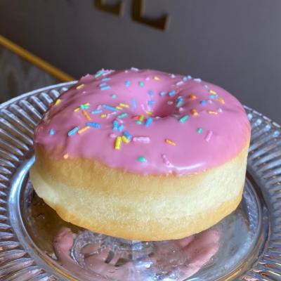 O mais vendido por sua fama dos filmes, é coberto com chocolate rosa de morango e granulado colorido.
