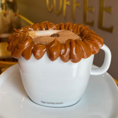 Um cappuccino com aconchego, com borda de doce de leite, café expresso, leite vaporizado e um toque de canela. 240ml