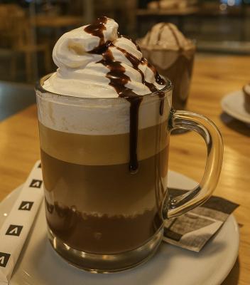 Calda de chocolate, café Expresso, delicioso leite cremoso e um toque de chantilly e calda de chocolate. 240ml