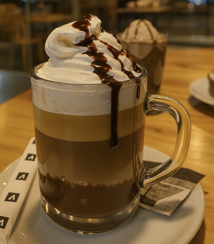 Café Expresso, Nutella, leite cremoso, chantilly e calda de chocolate. 240ml