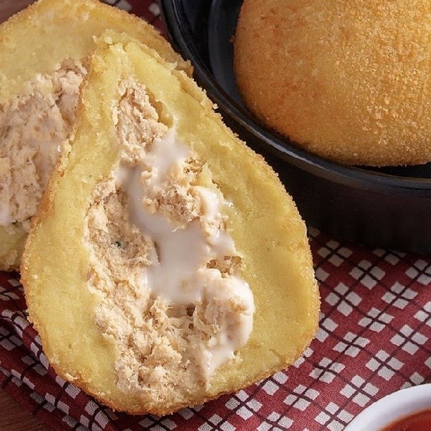 A incomparável, coxinha com massa de batata, recheada com frango e requeijão cremoso.