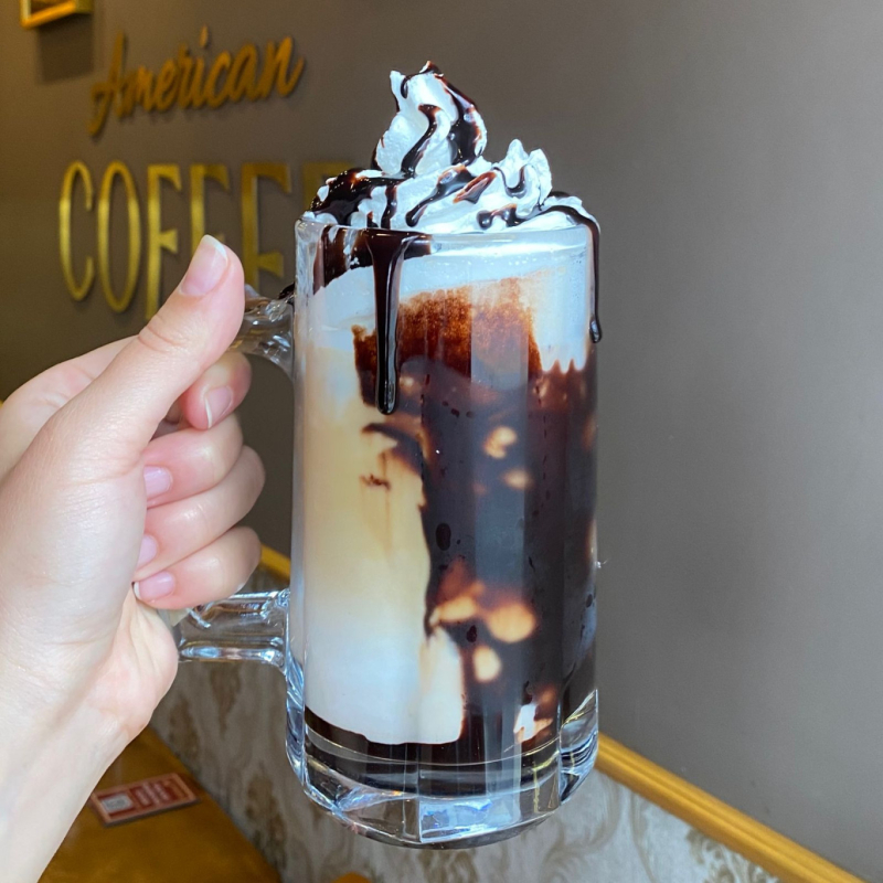Café Expresso feito na máquina e delicioso leite gelado cremoso, calda de chocolate, chantilly e gelo. 350ml