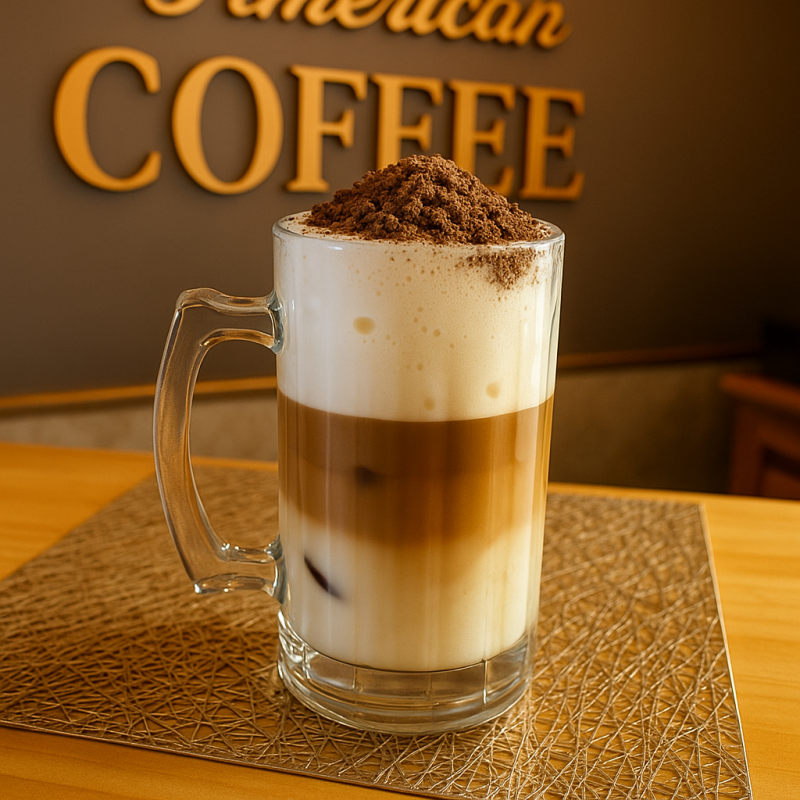 Bebida glamourosa feita com café expresso, Ovomaltine, leite cremoso gelado e gelo. 350ml