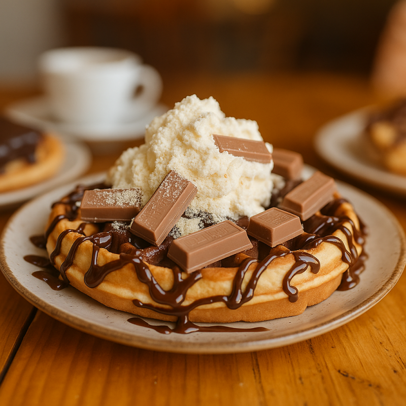 O master e irresistível sabor da junção com a cobertura de chocolate derretido, sorvete, leite Ninho e chocolate Kitkat.