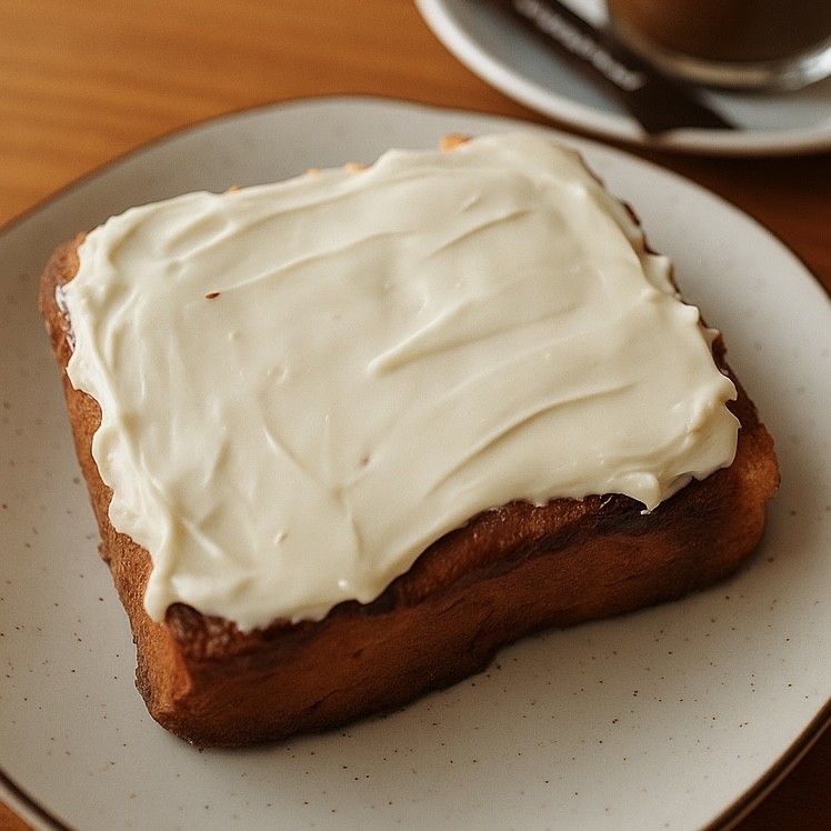 Creamcheese conhecido como queijo cremoso. Servido na incrível fatia de pão brioche tostado na manteiga.