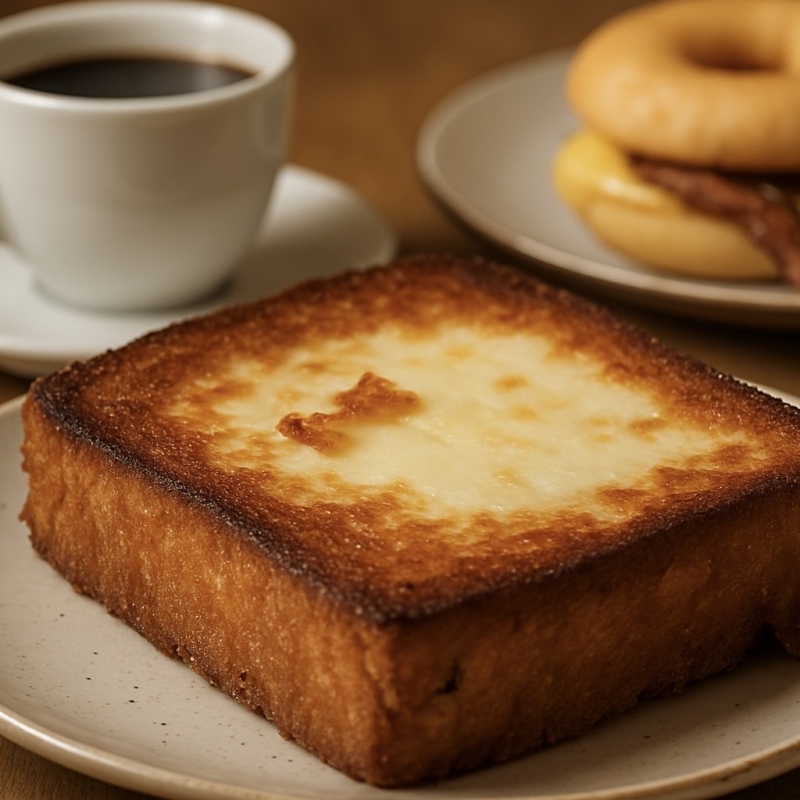 Requeijão bem cremoso, servido na incrível fatia de pão brioche tostado na chapa com manteiga.