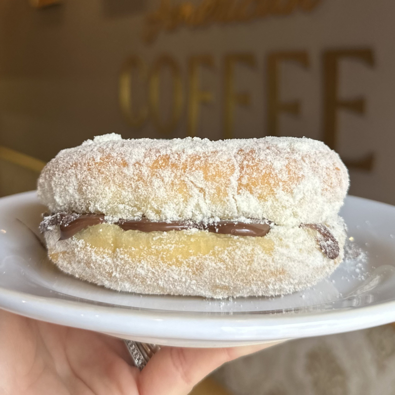 Polvilhado com Leite Ninho com um generoso recheio de Nutella que todos são fã.