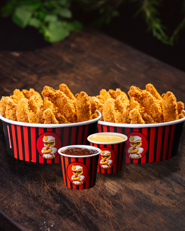 Para os viciados em molho com frango: 2 balde de frango (1.2kg no total) + 2 molhos à sua escolha pra dar aquele toque especial em cada pedaço. Feito pra juntar a galera, comer sem pressa e sair falando: “a gente exagerou… e valeu.”