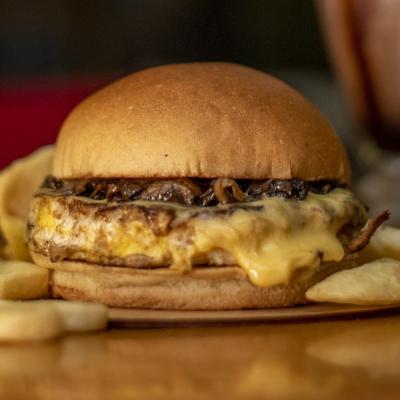Versão Marvin de um sanduíche Clássico. Filé mignon grelhado em tiras bem fininhas, cebola roxa fatiada e azeitona preta. Queijo prato e cheddar, bem derretidos