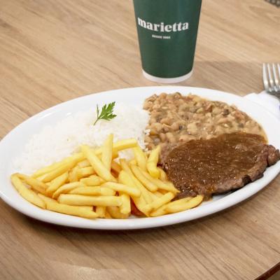 Combinado de Bife de contrafilé grelhado + 2 acompanhamentos por um preço especial!