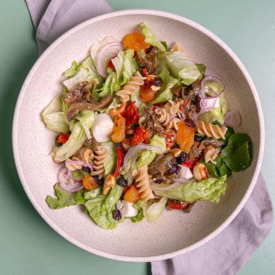 Atum, alface, rúcula, tomate cereja, palmito, parmesãoe molho italiano (aceto, azeite e mostarda)