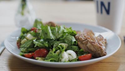 Escolha o grelhado e monte a sua salada com 5 ingredientes e 1 molho