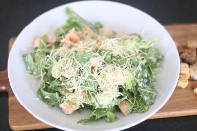 Alface americana, frango grelhado, parmesão e molho caesar.