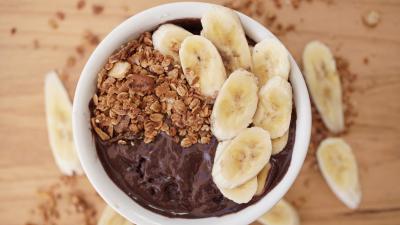 Banana, leite vegetal, curcuma (açafrão-da-terra), mel e canela