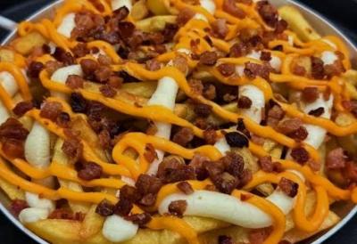Experimente a nossa porção de batata frita (400g)! Acompanhada de irresistíveis pedaços de bacon, cheddar e catupiry derretido e nosso delicioso molho da casa, tudo cuidadosamente preparado para servir até 2 pessoas.