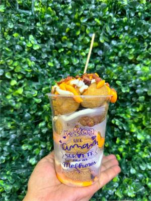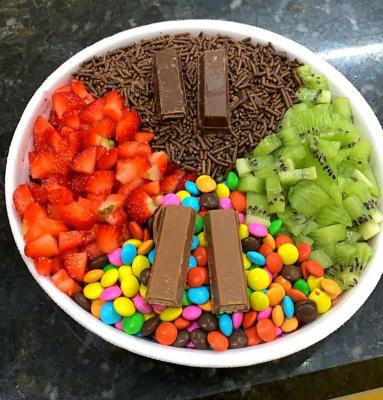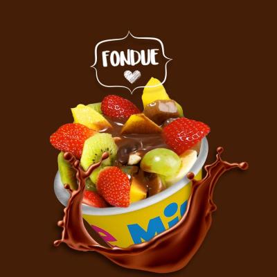 Experimente o nosso fondue no copo 400ml, Deliciosamente recheado com os mais frescos morangos, bananas e manga e os irresistíveis marshmallow. Para completar, uma camada de chocopawer adiciona uma crocância inesperada. tudo isso acompanhado da ganache de chocolate preto e ganache branco, que irão separados para seu deleite e amantes de fondue.
