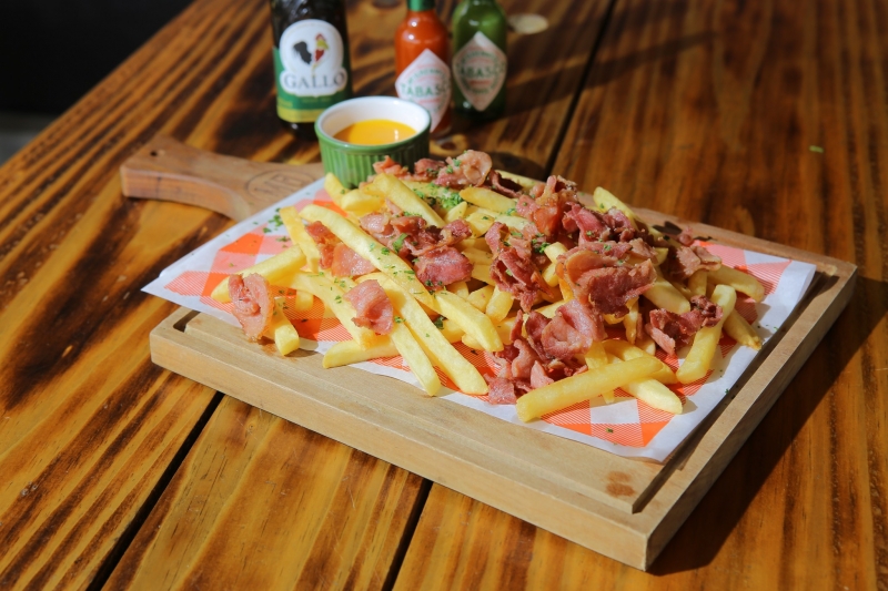 500g batatas frita e 200g de bacon, acompanhado de queijo cheddar cremoso.