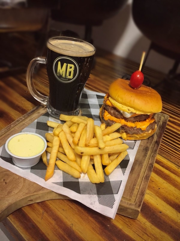Pão brioche selado, molho tasty, blend dublo de carnes nobres, queijo cheddar e totens de queijo gorgonzola e mel, acompanha batata palito e molho aioli.