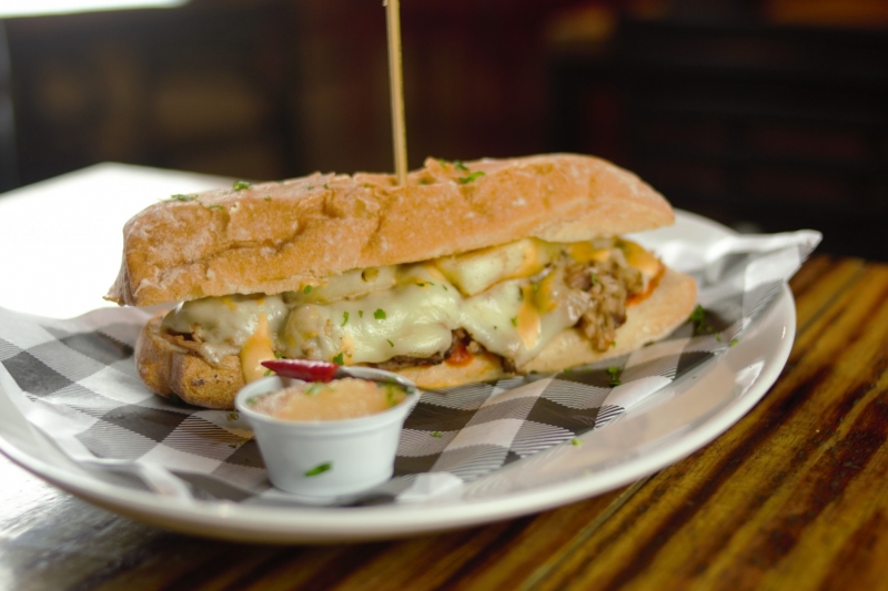 Sanduíche de origem da região da Bavária com costela suina desfiada e abacaxi grelhado