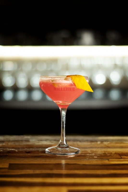 Vodka, suco de limão, licor de laranja e xarope de cranberry.