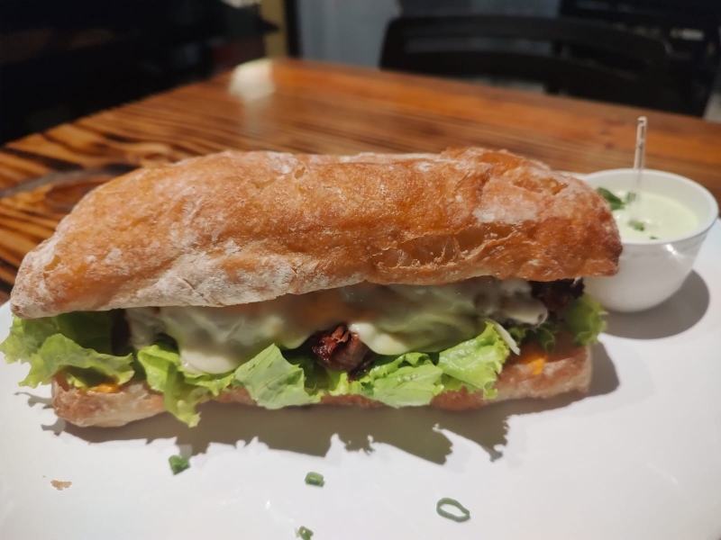 150g costela, pão ciabata, queijo mussarela, alface, tomate e molho tasty