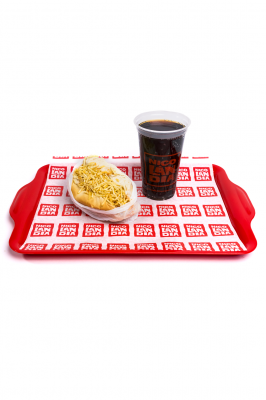 Pão de Hot-Dog, queijo mussarela, salsicha ao molho, milho e batata, refrigerante 300ml.