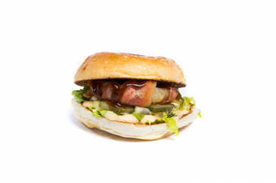 Pão Brioche, carne 120g, queijo mussarela, bacon fatiado, picles, alface, cebola caramelizada, molho especial.