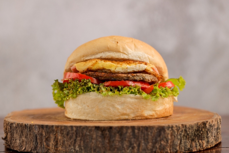Pão bola, hamburguer, queijo, presunto, ovo, tomate, alface e molho especial.