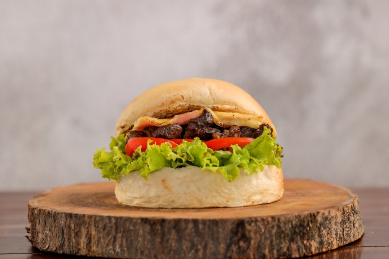 Pão bola, filé de boi, bacon, queijo, presunto, ovo, tomate, alface e molho especial.