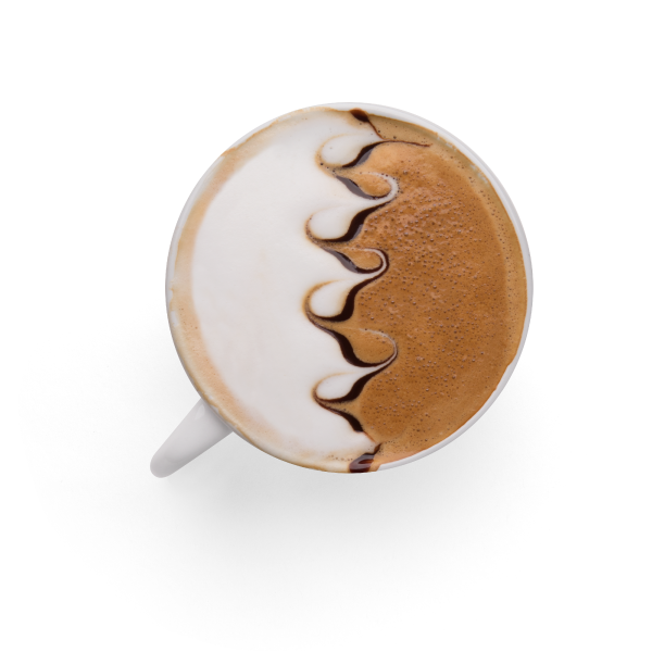 Espresso com leite, calda de chocolate, cacau e canela. (Contém lactose nos ingredientes complementares)