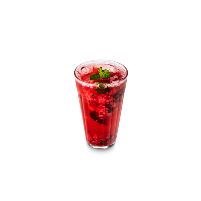 Framboesas amassadas produzem uma característica única nesta variação do Mojito clássico.