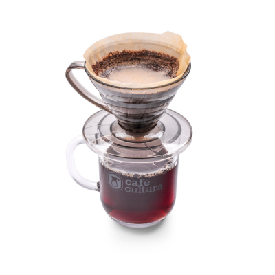 O formato cônico, que direciona a água para o centro; um único buraco grande no meio, que permite maior controle do fluxo de água; e suas ranhuras em espiral que criam um espaço entre o filtro de papel e o porta-filtro, fazem com que o café possa "se expandir melhor". O Resultado é uma bebida limpa e saborosa. Serve 1 pessoa