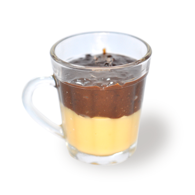 Espresso extraído sobre calda de chocolate, leite vaporizado e cobertura de calda de chocolate. ( Contém lactose nos ingredientes complementares)