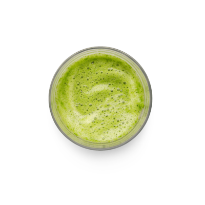 Água, suco de limão e mix detox (matcha, fibra de aveia, spirulina, gengibre, ora-pro-nóbis e chlorella).