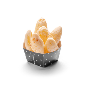 Pães de queijo feitos com queijo meia cura, queijo provolone e parmesão.6 unidades/ Verificar disponibilidade na vitrine