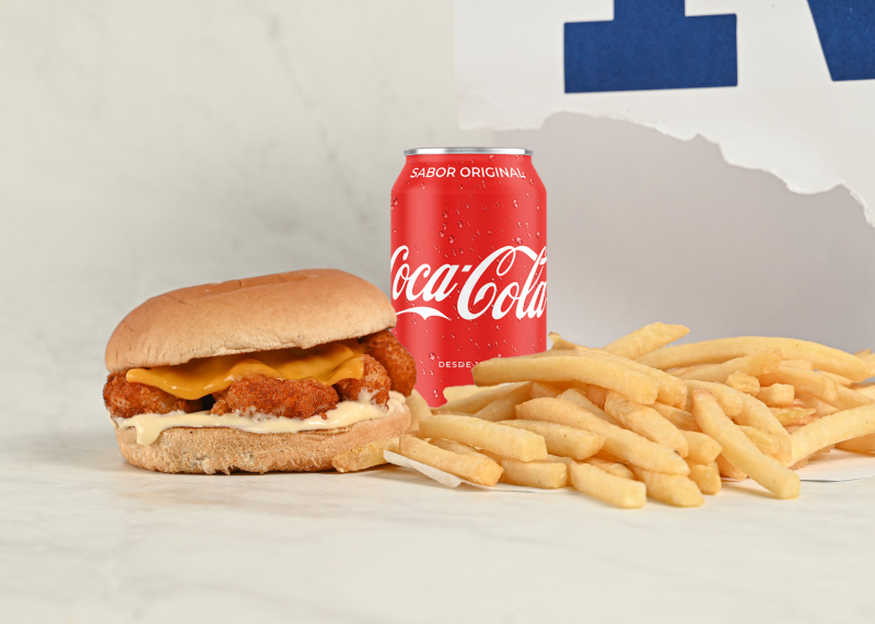 PÃO, CAMARÕES EMPANADOS CROCANTES, MOLHO SUAVE CREMOSO, QUEIJO, CEBOLA E PICLES.