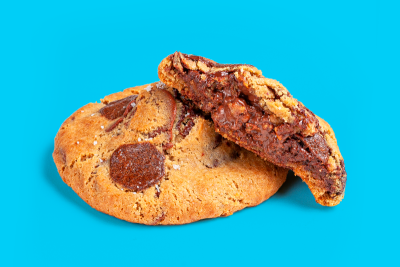 Cookie recheado com muuuita Nutella, feito com gotas de chocolate meio amargo e ao leite. Crocante por fora, cremoso por dentro!