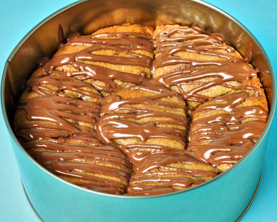 Massa de baunilha e chocolate, recheada com Nutella.